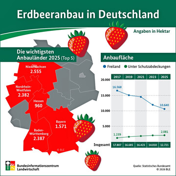 Erdbeere Die Erdbeer-Anbaufläche in Deutschland ist in den vergangenen Jahren deutlich zurückgegangen.
