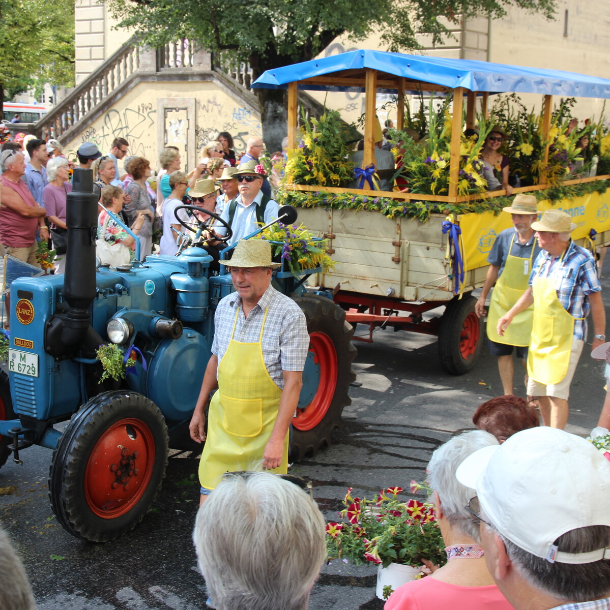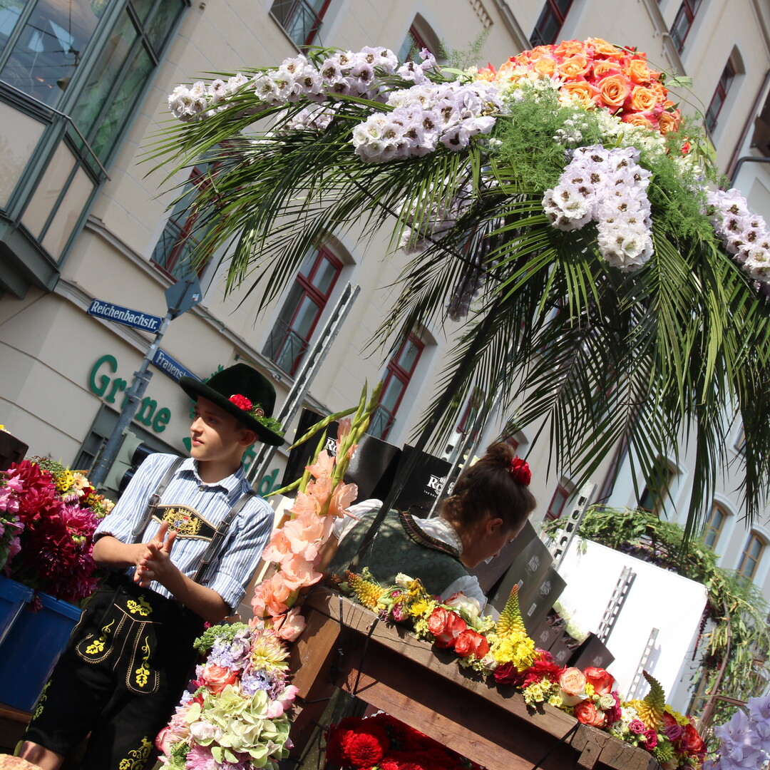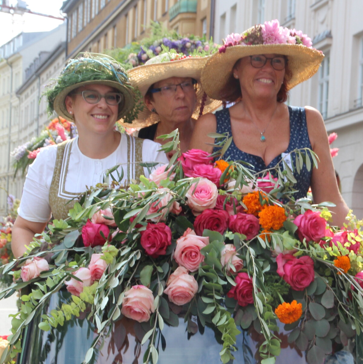 Der traditionsreiche beliebte Blumenkorso wurde von Mitgliedern des Vereins, den Gartenbaugruppen der Stadt und des Umlands, der Junggärtnervereinigung, den Gärtnern und Händlern des Blumengroßmarkts, Gemüsegroßmarktes und Viktualienmarktes, dem Botanischen Garten sowie weiteren berufsständischen Vereinigungen gestaltet. Dieses farbenfrohe Fest der Gärtner ist eines der letzten Treffen im Zunfthandwerk, neben denen der Schäffler, Brauer und Metzger.