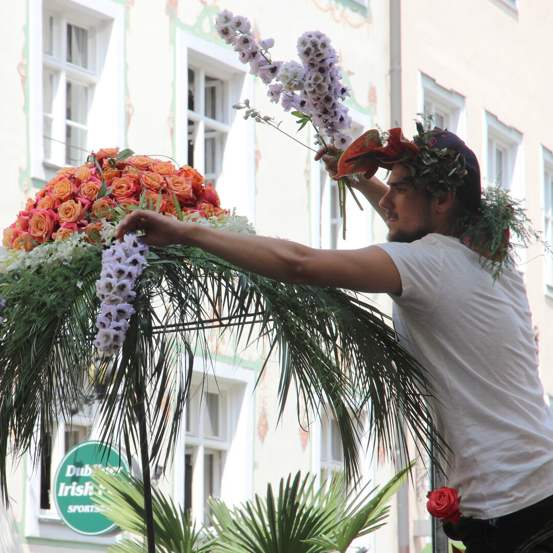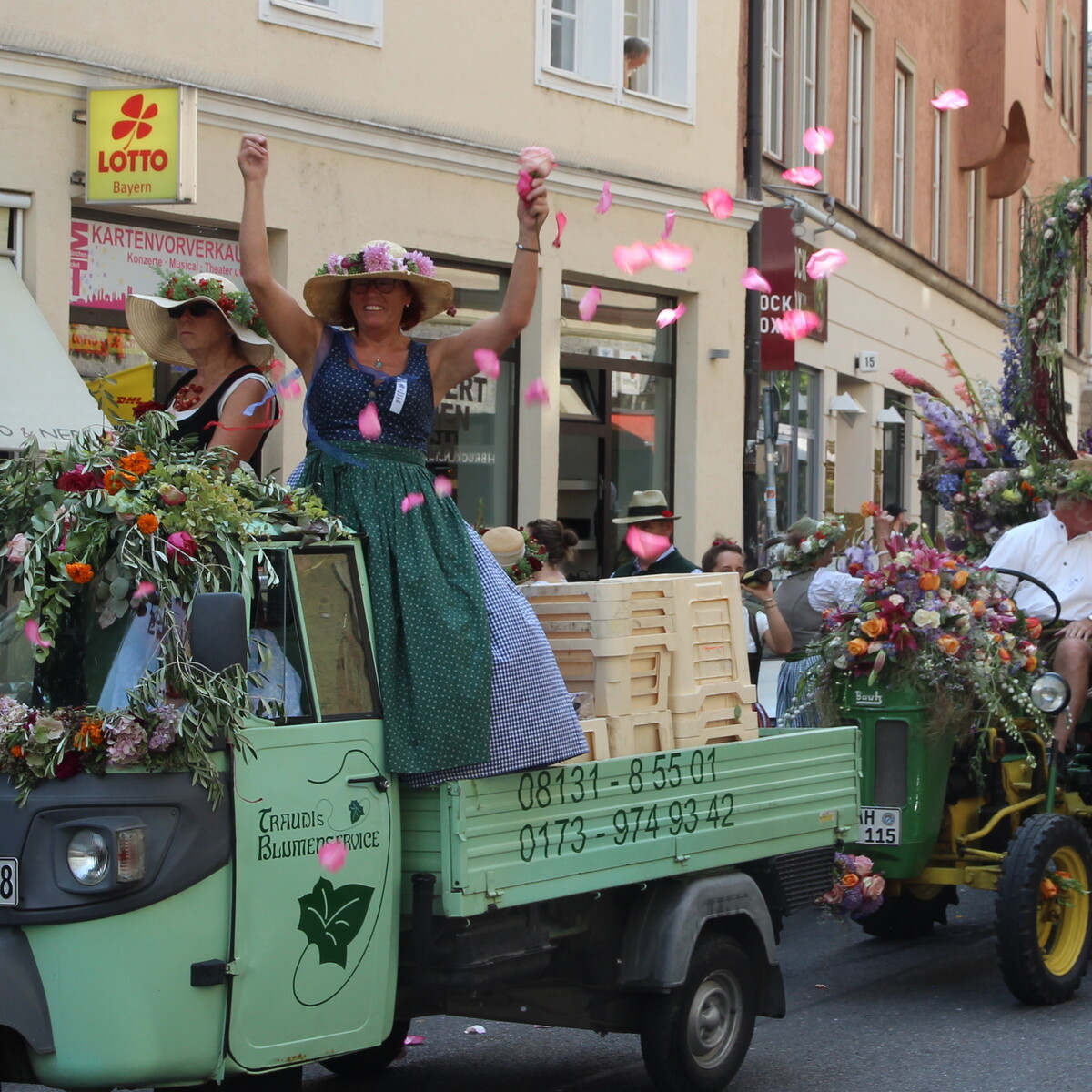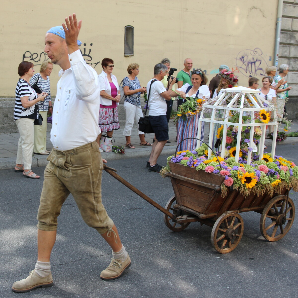 Der traditionsreiche beliebte Blumenkorso wurde von Mitgliedern des Vereins, den Gartenbaugruppen der Stadt und des Umlands, der Junggärtnervereinigung, den Gärtnern und Händlern des Blumengroßmarkts, Gemüsegroßmarktes und Viktualienmarktes, dem Botanischen Garten sowie weiteren berufsständischen Vereinigungen gestaltet. Dieses farbenfrohe Fest der Gärtner ist eines der letzten Treffen im Zunfthandwerk, neben denen der Schäffler, Brauer und Metzger.
