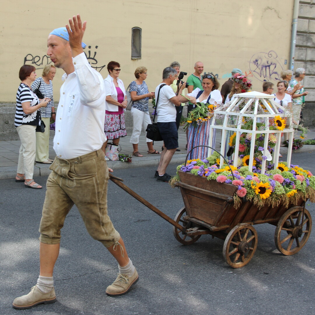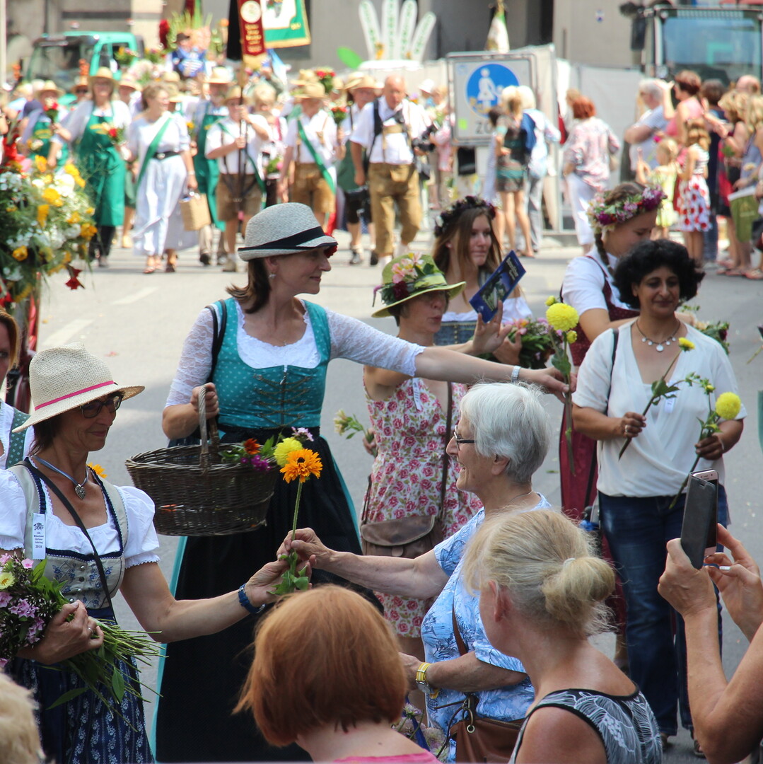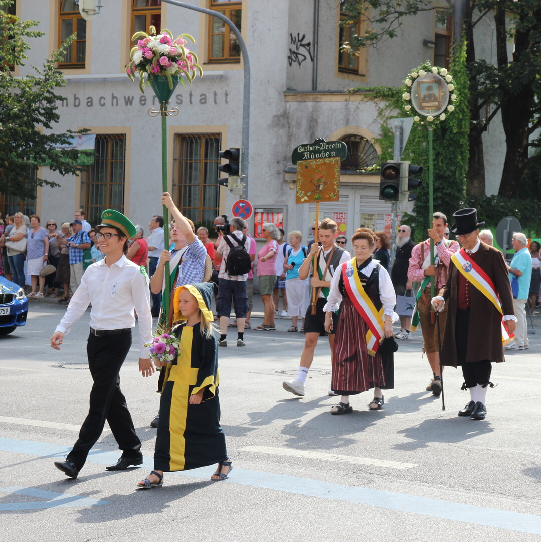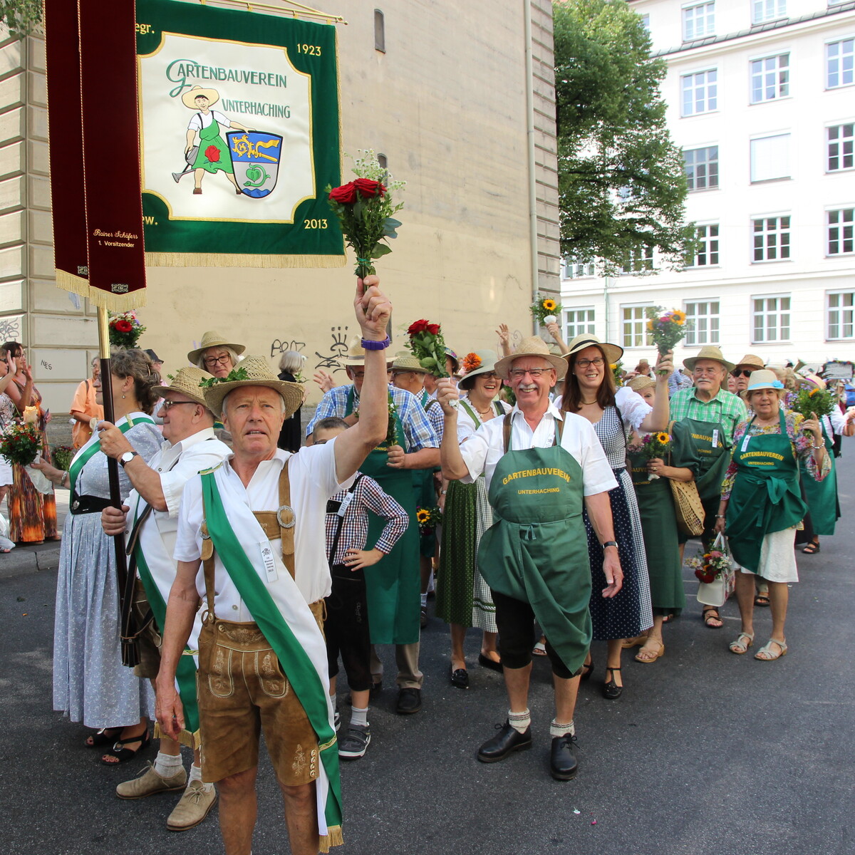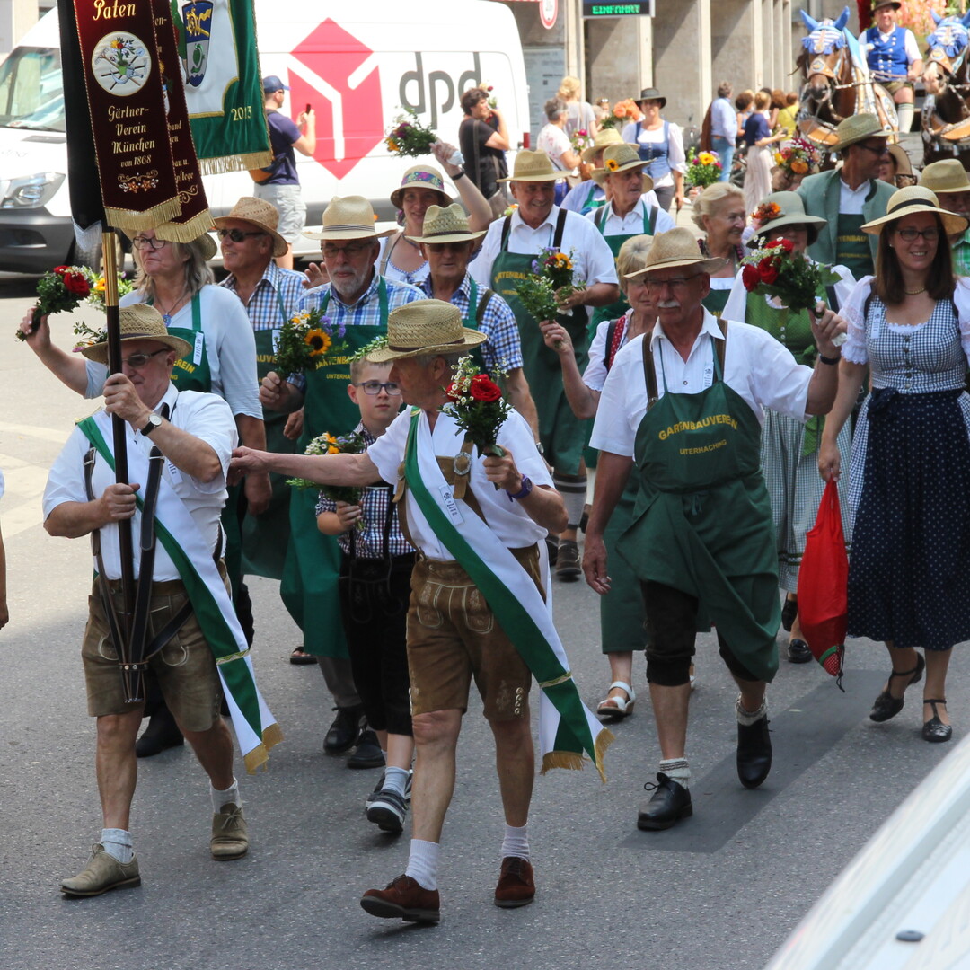 Der Gärtner-Verein München feierte am 7. August beim Gärtner-Jahrtag 2018 sein 150-jähriges Jubiläum mit einem großen Festumzug. Der startete in der Blumenstraße am Viktualienmarkt. Von dort ging es über den Marienplatz zur St. Peterskirche, wo ein Gedenkgottesdienst stattfand. Mit einem feierlichen Festakt anschließend im Hofbräuhaus endete der Gärtner-Jahrtag.