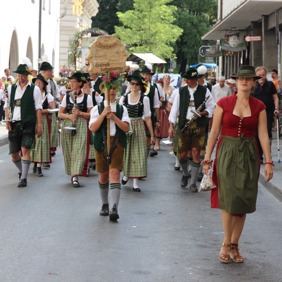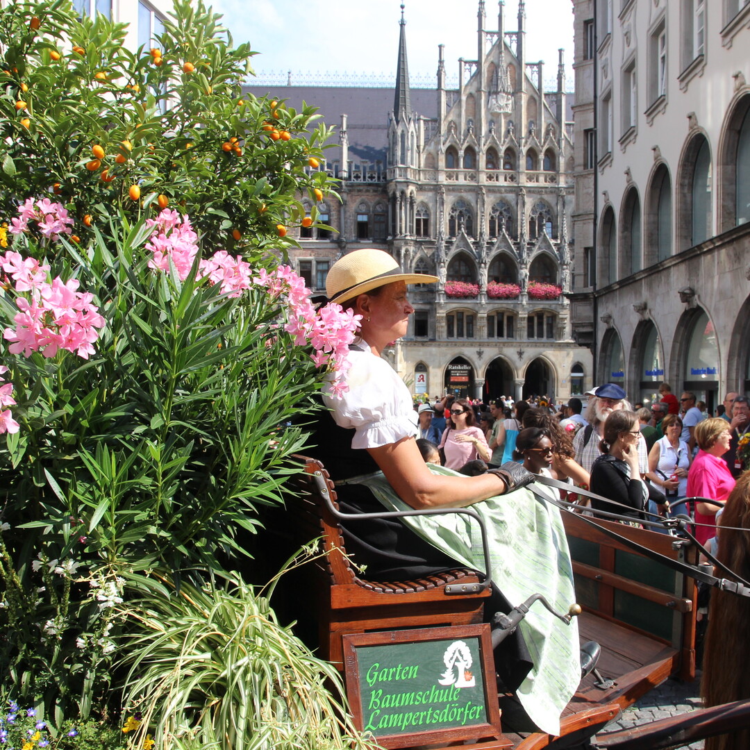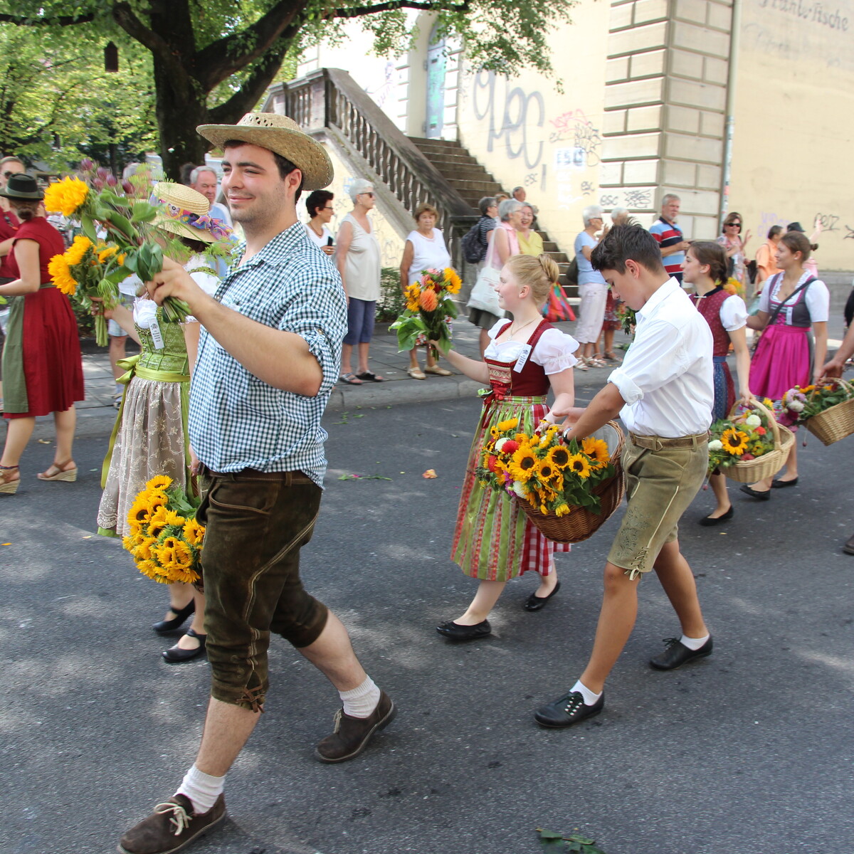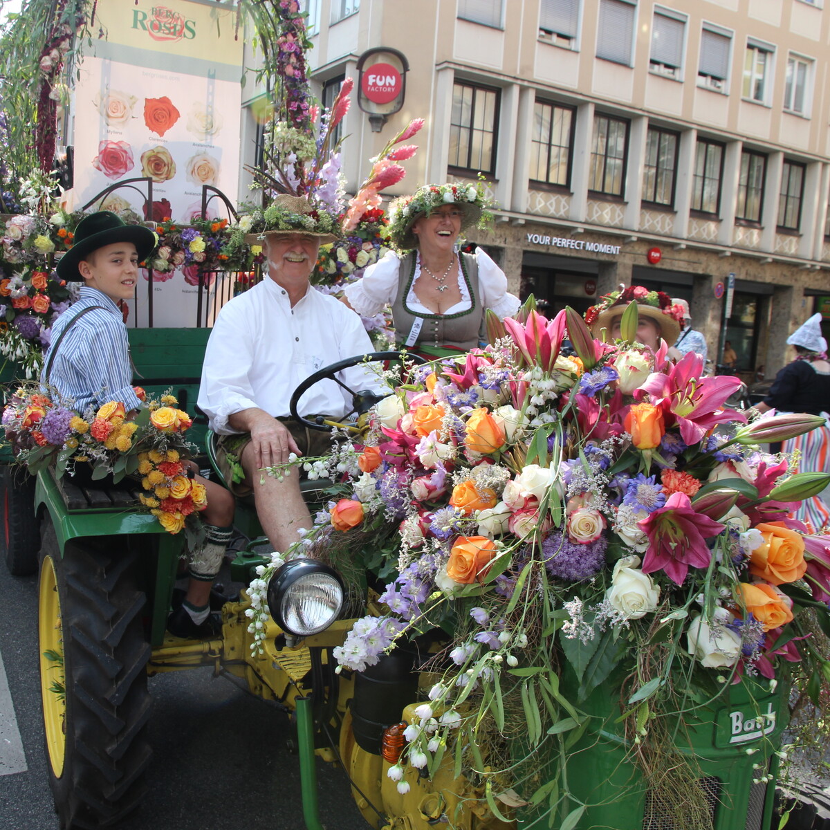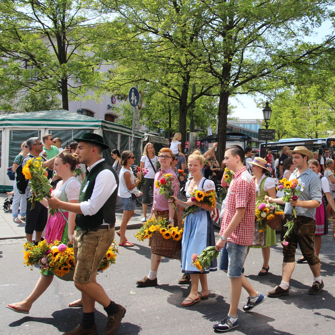 Der Gärtner-Verein München feierte am 7. August beim Gärtner-Jahrtag 2018 sein 150-jähriges Jubiläum mit einem großen Festumzug. Der startete in der Blumenstraße am Viktualienmarkt. Von dort ging es über den Marienplatz zur St. Peterskirche, wo ein Gedenkgottesdienst stattfand. Mit einem feierlichen Festakt anschließend im Hofbräuhaus endete der Gärtner-Jahrtag.