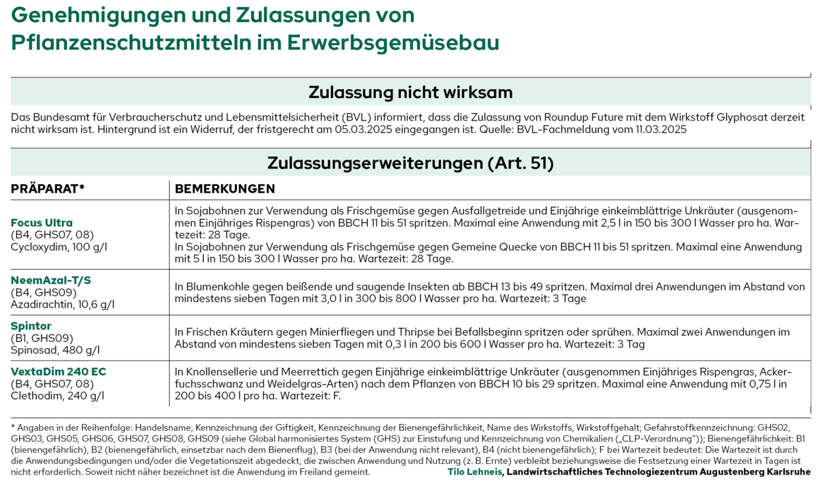 Genehmigungen und Zulassungen von Pflanzenschutzmitteln im Erwerbsgemüsebau