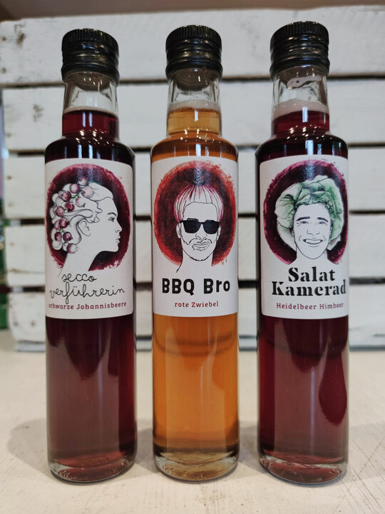 Die Genusskompliz*innen sind eine neue Produktserie von Schusters Spezialitäten. Jedes Produkt verbindet hochwertige Zutaten, handwerkliche Herstellung und ein unverwechselbares Design. Ob fruchtig, floral oder herzhaft – die Genusskompliz*innen veredeln laut Hersteller nicht nur Getränke wie Prosecco, Mineralwasser oder Mocktails, sondern bereichern auch die Küche – von frischen Salaten und raffinierten Dressings bis hin zu würzigen Marinaden und Dips für das nächste BBQ. So entsteht ein kulinarisches Konzept, das Stil, Natürlichkeit und Freude am Ausprobieren miteinander verbindet. Die „Secco Verführerin“ verleiht durch die Komposition aus Bio-Apfelessig, Schwarzen Johannisbeeren, Hibiskusblüten und feinem Zucker prickelndem Sekt eine natürliche, fruchtige und frische Note. Der „BBQ Bro“ ist ein aromatischer Allrounder rund ums Thema Grillen: Mit roten Zwiebeln, Bio-Blutorangen und Chilischoten vereint er Süße, Schärfe und Säure auf natürliche Weise. Er eignet sich für Marinaden, Dips und Saucen. Der „Salatkamerad“ ist die fruchtige Ergänzung für eine leichte Mahlzeit: Heidel- und Himbeeren entfalten in Bio-Apfelessig mit einem Hauch Zucker ihre volle Wirkung. So verwandelt er einfache Salate in besondere Genussmomente.
