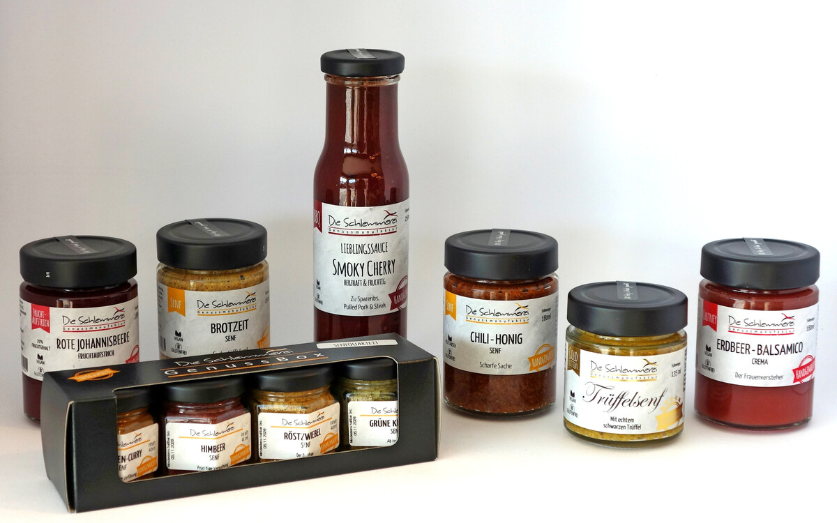 Seit 2013 produziert „Die Schlemmerei“ in Handarbeit Senfspezialitäten, Chutneys, BBQ-Saucen und Fruchtaufstriche. Kreative Rezepturen, eigene Herstellung und persönlicher Service stehen laut der Inhaber Antje und Frank Dobrin ganz weit oben. Im Familienbetrieb entstehen fruchtige und herzhafte Geschmackserlebnisse, die eine köstliche und hochwertige Erweiterung für den Hofladen bieten. Dabei verzichtet „Die Schlemmerei“ auf künstliche Zusatzstoffe.