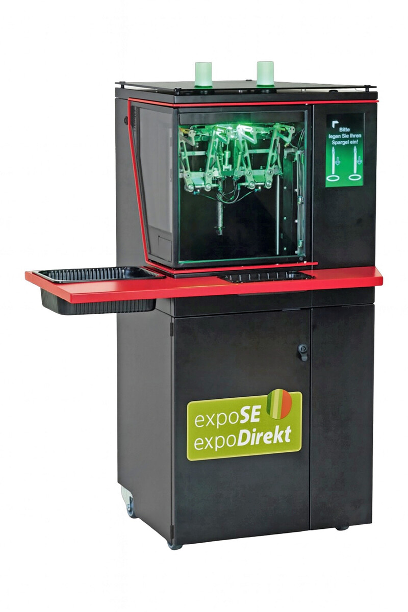 Die neue Schälmaschine „spargel royal“ im SB-Bereich für Hofläden und Supermärkte präsentiert die HEPRO GmbH. Der geschälte Spargel wird erstmals seitlich ausgegeben – was schneller, edler und effizienter ist. Das hochwertige Edelstahldesign überzeugt laut Hersteller in Optik und Technik: Nur zwei Messerpaare genügen, um jeden Spargel zu 100 % perfekt zu schälen. Die Reinigung dauert weniger als fünf Minuten. Mit dieser Innovation bringt HEPRO industrielle Hochleistungstechnik direkt in den Verkauf, ersetzt herkömmliche Systeme und setzt nach eigenen Angaben neue Maßstäbe bei Tempo, Hygiene und Design.