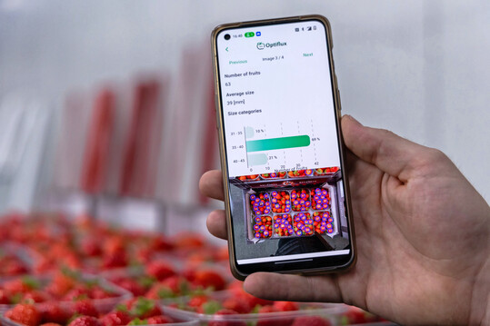 Optiflux hilft der Frischwarenbranche, das Potenzial von Technologie und KI zu nutzen, um die Qualität von Obst messbar, vorhersehbar und rentabel zu machen. Mit Quality Insights können Nutzer Obstkisten oder -paletten fotografieren und so automatisierte Kontrollen hinsichtlich Größe, Farbe und Mängeln durchführen. Dadurch werden subjektive Stichproben überflüssig und Erzeuger sowie Händler erhalten zuverlässige Erkenntnisse in großem Maßstab. Die Stichprobengröße steigt drastisch, während weniger manuelle Kontrollen erforderlich sind, was zu höheren Erträgen mit Qualitätsdaten führt. Mit OptiPallet erhalten Obstbauern und Händler eine flexible Lagerungsmöglichkeit unter kontrollierter Atmosphäre (CA) pro Palette. Jede Palette wird in einem individuellen Beutel versiegelt und aktiv überwacht und kontrolliert, um die idealen Bedingungen mit niedrigem Sauerstoffgehalt und hohem CO2-Gehalt aufrechtzuerhalten. Das automatisierte Lagersystem kann Hunderte von Paletten autonom verwalten, sodass Erzeuger Erntehöhepunkte verteilen und die Lagerung um mehrere Wochen oder sogar Monate verlängern können. Mit OptiPallet kann jede Palette zum richtigen Zeitpunkt und zum richtigen Preis verkauft werden.