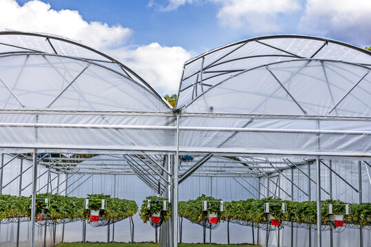 Gemeinsam mit Rovero bringt Growtec nun ein neues Anbaukonzept für Beerenobst auf den Markt, das darauf abzielt, den Ertrag und die Fruchtqualität auf nachhaltige und effiziente Weise zu steigern. Growtec ist im Bereich Anbau- und Bewässerungssysteme tätig, während Rovero sich auf die Entwicklung und den Bau von Folientunneln spezialisiert hat. Beide Fachgebiete wurden bei der Entwicklung der vorgestellten AirVent-Fruchtabdeckung kombiniert. Zu ihren Merkmalen gehören laut Growtec eine selbstbelüftende Folie und eine robuste Konstruktion, an der vier Dachrinnen aufgehängt werden können.