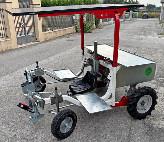 Bagioni präsentiert als Messepremiere eine Maschine zur Erleichterung der Spargelernte mit elektrischem Antrieb, geeignet für weißen und grünen Spargel, ausgestattet mit Lithium-Batterien und Solarpanel. Die Maschine verfügt über eine einstellbare Spurbreite und Bodenfreiheit, sodass sie für alle weltweit verfügbaren Spargelanbausysteme geeignet ist. Auch hat sie eine Funktion zum Anheben der Plastikfolie für grüne oder weiße Spargelreihen. Die Motor- und Steuerungskühlung ist für tropische Klimabedingungen geeignet und verfügt über ein 2-Gang-Getriebe (1 Gang für die Ernte, 1 Gang für die Fahrt), gedämpften Sitz mit Armlehnen für mehr Ergonomie sowie GPS-Datenübertragung zur Lokalisierung, Erfassung der täglichen Fahrstrecke und Messung der geernteten Spargelmenge.