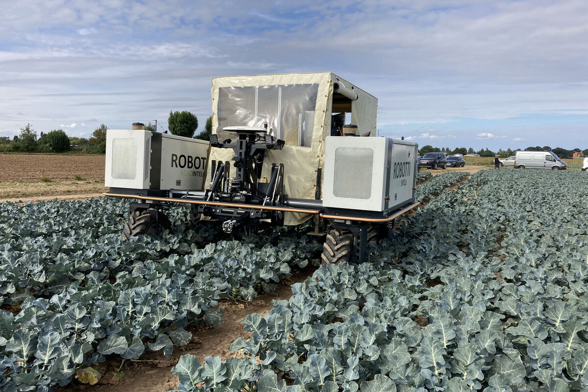 Der RoboVeg Robotti kombiniert einen leistungsstarken Feldroboter der Firma Agro Intelligence ApS mit dem Brokkoli-Ernteroboter von RoboVeg Ltd. Der Feldroboter Robotti arbeitet mit zwei Motoren, die eine Gesamtleistung von 104 kW bereitstellen. Davon sind 40 kW an der Zapfwelle abrufbar. Das Hubwerk verfügt über eine Hubkraft von 750 kg. Der RoboVeg ist mit hochauflösenden 2D-Kameras und 3D-Sensoren ausgerüstet. Zwei um sechs Achsen schwenkbare Roboterarme übernehmen die autonome Brokkoli-Ernte. Von der Selektion des Brokkoli im Feld bis zur Ablage benötigt ein Roboterarm circa 3 Sekunden. Die Ernteleistung liegt bei rund 2.400 Stück pro Stunde, während bei der Handernte Leistungen von lediglich 300 bis 360 Stück pro Stunde und Arbeitskraft erzielt werden.