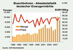 Insgesamt setzten die Erzeugermärkte 2009 rund 8.800 t Buschbohnen ab, die zweitgrößte Menge nach 2008. Trotz der gesteigerten Absatzmengen lagen die durchschnittlichen Erzeugermarktpreise seither ein ganzes Stück höher als vor zehn oder zwanzig Jahren.