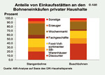 Bei Stangenbohnen war dies so nicht der Fall. Dies spiegelt sich auch bei der Bedeutung einzelner Einkaufsstätten wider. Die Einkäufe von Stangenbohnen verlagerten sich in der Zwischenzeit zunehmend wieder aus dem LEH heraus, vor allem zu den Wochenmärkten. Bei Buschbohnen dagegen stieg der Anteil der über den LEH gekauft wird zuletzt bis auf 70 %. Dabei sind es nicht einmal die Discounter, die dies forcieren, sondern Food-Vollsortimenter und SB-Warenhäuser. Letztlich bewirbt der LEH in Aktionen auch eher Busch- als Stangenbohnen.