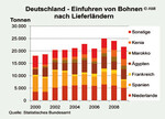 2008 wurden nach Statistischem Bundesamts 24.060 t Bohnen nach Deutschland eingeführt. Als wichtigste Lieferanten treten die Niederlande (6.043 t), Spanien (4.850 t) und Ägypten (3.393 t) auf. Für 2009 lassen vorläufige Angaben auf einen Rückgang der Bohnenimporte schließen.