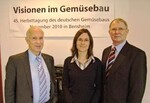 Schaller, im Bild mit ihrem Vorgänger im Amt, Prof. Dr. Peter-J. Paschold (l.), und Gerhard Schulz, Vorsitzender der Bundesfachgruppe Gemüsebau (r.), Geburtsjahrgang 1977, wuchs im elterlichen Nebenerwerbs-Erdbeer-Betrieb auf und studierte an der TU München-Weihenstephan (TUM) Gartenbauwissenschaften. Sie begann ihre wissenschaftliche Tätigkeit als Mitarbeiterin am Lehrstuhl für Phytopathologie der TUM in einem Projekt über Phytophthora- Befall an Kartoffeln. Ab 2004 arbeitete sie als wissenschaftliche Mitarbeiterin im Fachgebiet für Gemüsebau der Forschungsanstalt Geisenheim an Ihrer Dissertation zum Thema Wasserhaushalt von Spargelpflanzen. Sie wurde 2008 an der Justus- Liebig-Universität Gießen promoviert zum Dr. agr. mit dem Thema...