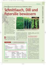 Thüringen hält mit etwa 22% (1.400 ha) den höchsten Anteil am Arznei- und Gewürzpflanzenanbau Deutschlands. Mit den hohen Qualitätsansprüchen an Thüringer Kräuter ist jedoch ein hohes Produktionsrisiko verbunden. Um Ertragsausfällen entgegen zu wirken, kommt der Bewässerung eine besondere Bedeutung zu. Nach den Ergebnissen zur Bewässerung von Pfefferminze (Gemüse Nr. 12/2005) werden jetzt Resultate aus Versuchen an der Thüringer Landesanstalt, Jena, zu unterschiedlichen Bewässerungsverfahren bei Schnittlauch, Petersilie und Dill veröffentlicht.