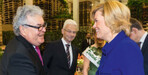 Bundeslandwirtschaftsministerin Julia Klöckner und der Gemüseunternehmer und ZVGVizepräsident Vizepräsident Willi Böck tauschten sich über aktuelle berufspolitische Themen aus. Klöckner besuchte die Blumenhalle auf der diesjährigen Internationalen Grünen Woche in Berlin. Im Hintergrund ist ZVGVizepräsident Hartmut Weimann zu sehen.