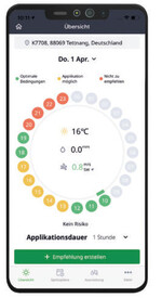 Spray Assist ermittelt unter Berücksichtigung stundengenauer Wetterdaten einen optimalen Behandlungstermin und gibt Empfehlungen zur optimalen Einstellung von Düse, Druck, Wasseraufwandmenge und Fahrgeschwindigkeit. Für jeden Düsentyp kann auf diese Weise die biologische Leistung der Pflanzenschutzmittel- Anwendung verbessert und eine zielgenaue Ausbringung realisiert werden. Derzeit sind in Spray Assist mehr als 80 der in Deutschland gebräuchlichsten Düsen hinterlegt. Eine wichtige Funktionalität bietet Spray Assist bei Wirkstoffen mit produktspezifischen Anwendungsbestimmungen zur Abdriftminderung. Spray Assist erkennt, welche Düse in diesem Fall am besten geeignet ist und empfiehlt die korrekten Einstellungen zur sicheren Einhaltung...