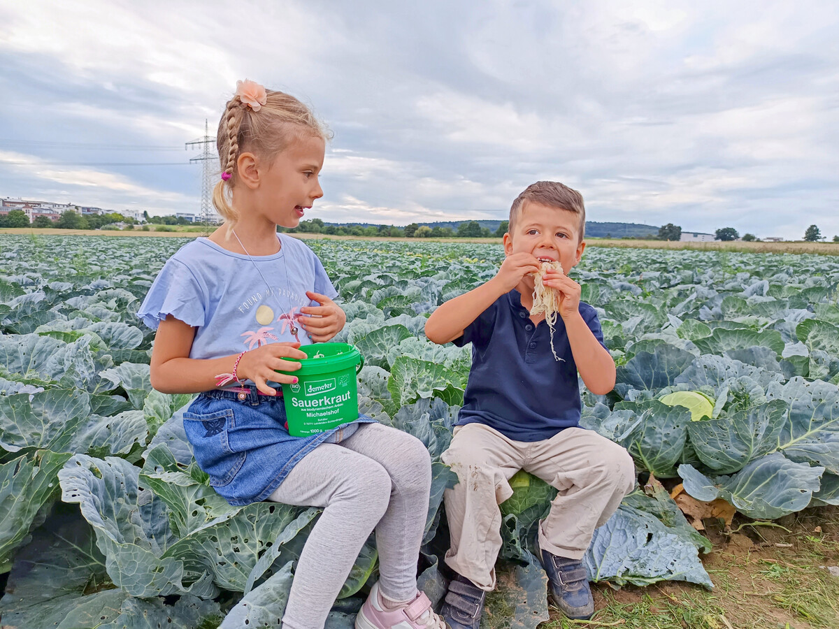 Bis vor Kurzem fanden sowohl Sauerkraut als auch alle anderen Produkte des Demeter-Hofes ihren Weg direkt zum Endkunden. Ein Ab-Hof-Verkauf sowie Wochenmärkte machten es möglich. Doch damit ist Schluss. Vermarktet wird nun ausschließlich über den Einzelhandel, den Naturkostgroßhandel und Kollegen, die Abo-Kisten anbieten. Die Gründe dafür sind vielschichtig. „Es gibt zwar gute Wochenmärkte, aber man konkurriert immer mit dem Einzelhandel um die Preise. Zudem habe ich das Gefühl, dass gerade die jungen Leute nicht mehr so gerne auf Wochenmärkte gehen, höchstens noch für ein Kochevent oder so“, erläutert Michael seine Entscheidung. Die Hochzeiten zu Corona, in denen der Bio-Absatz durch die Decke ging, sind lange vorbei. „Man merkt zwar schon, dass sich der Markt langsam ein bisschen erholt“, sagt Michael, „aber gerade Bio-Pioniere im Handel, die sich auf Verbands-Bio spezialisiert haben, tun sich derzeit sehr schwer, weil die Mengen einfach nicht mehr gehen“.