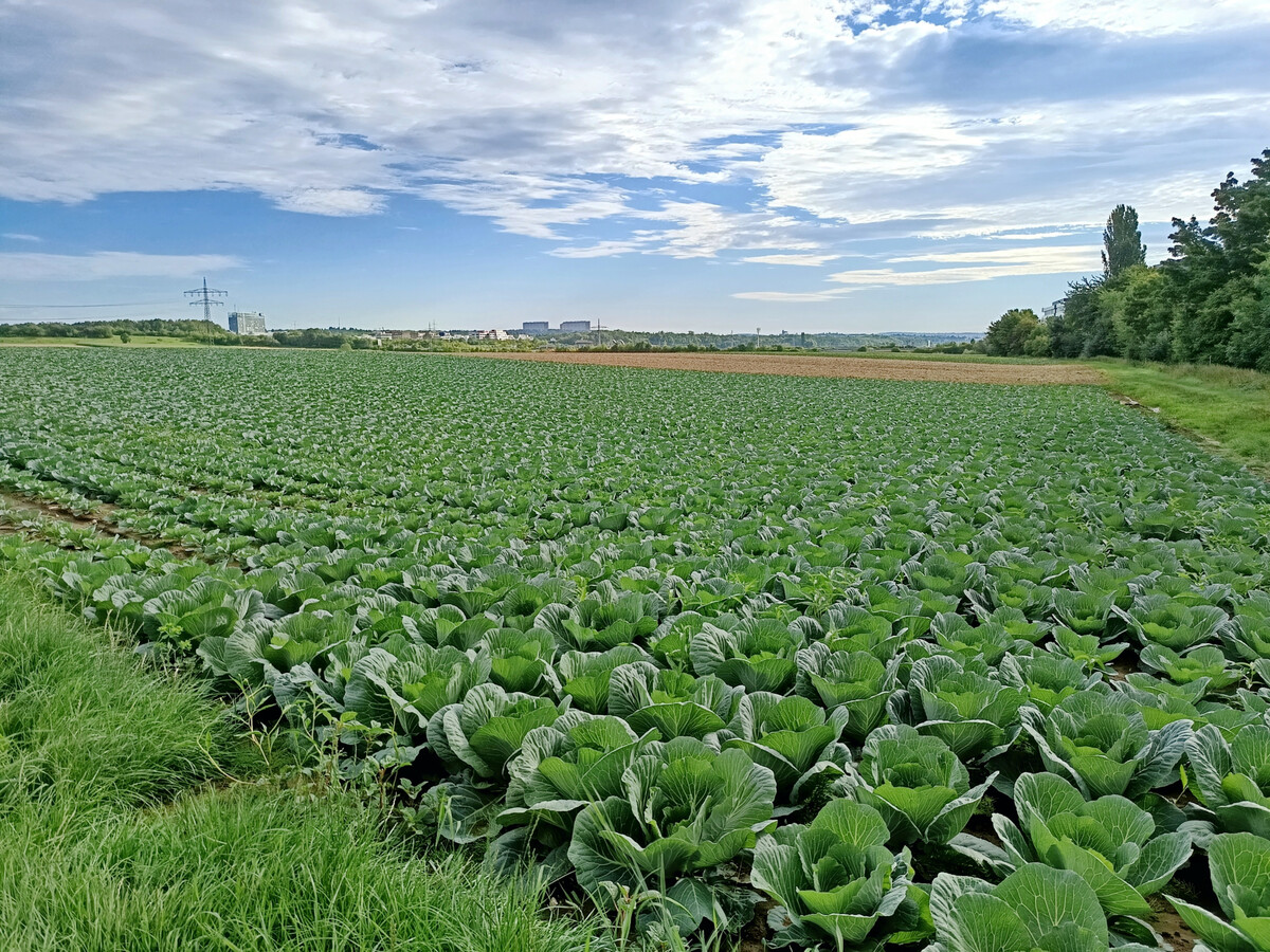 Angebaut wird auf den rund 60 ha Fläche eine bunte Gemüsevielfalt. Was auf den Fildern dabei auf keinen Fall fehlen darf ist Weißkohl, genau genommen Spitzkohl. Auch innerhalb der Familie Schäfer wird seit Generationen an der familieneigenen samenfesten Sorte gezüchtet und selektioniert. Jeder Betrieb hier oben hat seine ganz eigenen Sorten und Schwerpunkte – Farbe (von weiß bis grünlich), Form (von spitz bis bauchig), Größe (von klein bis groß), Verarbeitungstauglichkeit (Frischmarkt oder Verarbeitung) und Reifezeitpunkt (früh bis spät). „Wir haben ein etwas kleineres, grünes Spitzkraut, das auch für den Frischmarkt geeignet ist“, beschreibt Michael die Typizität der familieneigenen Selektion. Als ein Kollege aus der Nachbarschaft seinen Betrieb aufgab, hat der Demeter-Betrieb auch dessen Sorten übernommen. Diese sind eher groß und bauchig und daher speziell für die Verarbeitung gedacht.