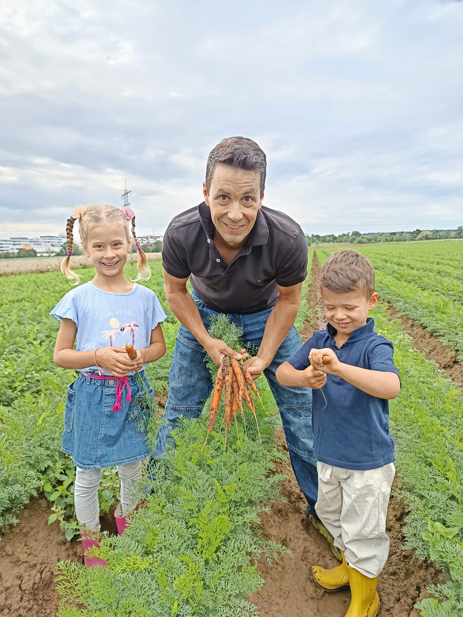 von Regina Klein erschienen am 26.08.2025Stadt – Land – Flughafen, das sind drei Schlagworte, die einem unweigerlich in den Sinn kommen, wenn man auf dem Michaelshof in Leinfelden-Echterdingen ankommt. Mitten im urbanen Raum liegt hier oben auf den Fildern ein landwirtschaftliches Kleinod. Vor etwa 100 Jahren bewirtschafteten noch rund 200 Betriebe die fruchtbaren Böden vor den Toren Stuttgarts, heute sind es gerade noch eine Hand voll. Einer davon gehört Familie Schäfer, die auf ihrem Demeterhof von und mit der Natur lebt. 1990 siedelten Marita und Martin Schäfer an den heutigen Standort aus. Als Demeter-Pioniere stellten sie den Betrieb bereits 1974 auf ökologische Landwirtschaft um. 2023 übernahm Sohn Michael den Hof. Unterstützt wird er von seiner Frau Saskia, die sich hauptsächlich um alle Büroangelegenheiten kümmert und seinen beiden ältesten Kindern Sarah und Bennet, die neben Schule und Studium ebenfalls auf dem Hof mithelfen.