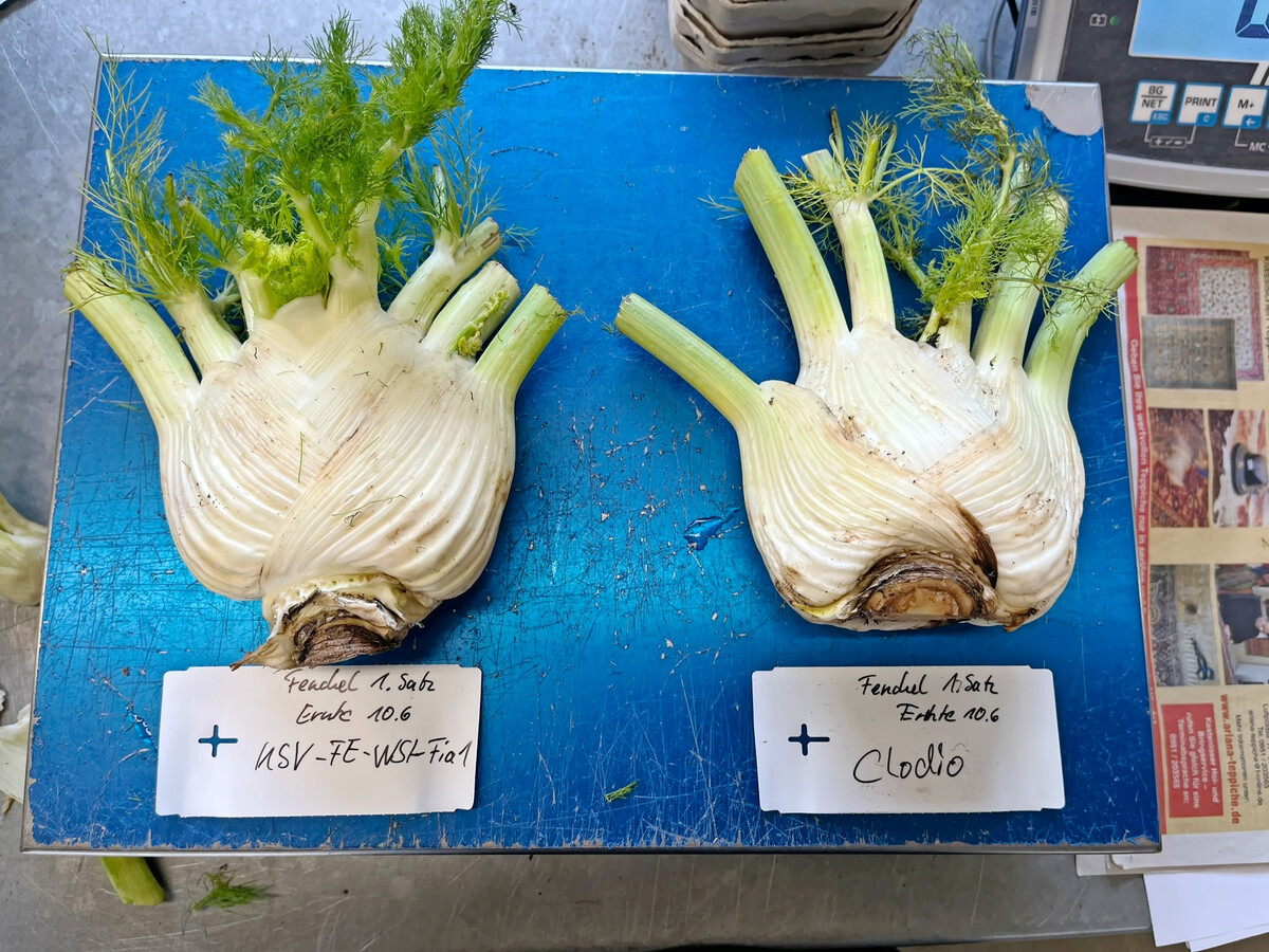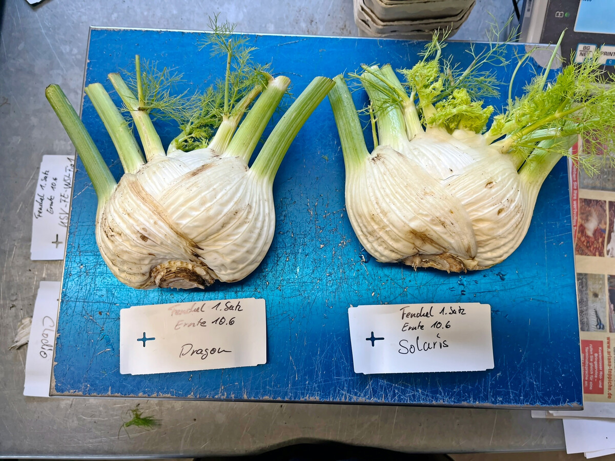 von Lena Lips erschienen am 06.09.2025Der typische Knollenfenchel hat eine bauchige, kugelige Form, so wie man ihn in den Supermarktregalen liegen sieht. Aus diesem Grund spielt die Knollenform bei diesem Sortenversuch eine zentrale Rolle. Der Versuch wurde 2023 gestartet und wurde 2024 mit weiteren Sorten fortgeführt. Dabei wurde geprüft, welche der sechs Sorten die typische Form, die der Verbraucher wünscht, aufweisen kann. In drei Pflanzsätzen – einem frühen, einem Sommer- und einem späten Satz – wurden sechs verschiedene Sorten angebaut und auch hinsichtlich ihres marktfähigen Ertrags, ihrer Knollengröße, ihrer Schossfestigkeit sowie ihrer Haltbarkeit verglichen.