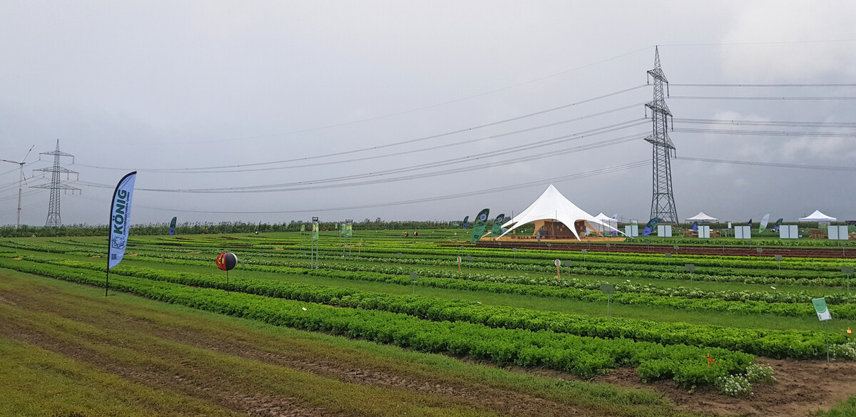 Mitten auf dem Feldtagsgelände bot ein kleines Vortragsprogramm spannende Einblicke in die Züchtung und Post-Harvest-Forschung. Hier wurde unter anderem tiefer auf den Durchbruch der Nasonovia-Resistenz Nr:0 im Jahr 2007 sowie die daran anschließenden Züchtungsbemühungen bis hin zu den bald erscheinenden Neuheiten bei Eissalat mit Nr:1 intermediärer Resistenz eingegangen. Auch die in diesem Jahr unerwartet stark aufgetretenen Virus-Probleme im Kürbisanbau waren Thema. Die internationalen Spezialisten von Enza Zaden kamen zu dem Schluss, dass das sehr warme Frühjahr zu einer frühen Vermehrung der übertragenden Baumwollblattläuse geführt habe, welche dann in großer Zahl auf die noch relativ schwachen jungen Kürbispflanzen trafen. Wie die Anforderungen des Marktes und der Konsumenten ihren Weg in die Züchtung finden, das wurde beim Blick hinter die Kulissen der Post-Harvest- und Sensorikforschung gezeigt.