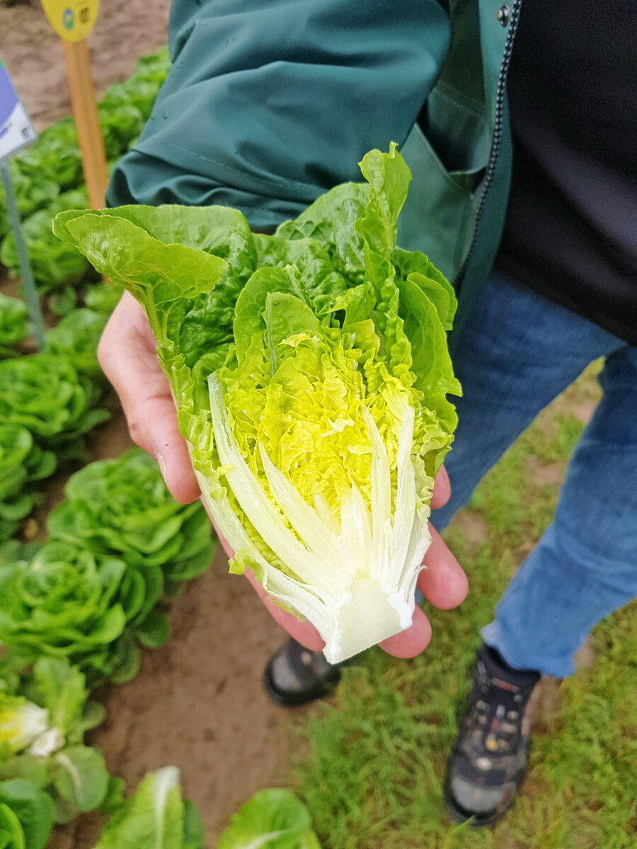 Als diesjährige Highlights bei den Eissalaten wurden ‘Thibo’ und ‘Lealdo’ mit vollständiger Bremia-Resistenz vorgestellt. ‘Thibo’ (HR: Bl:29-41EU/Nr:0) ist für den Anbau im späten Frühjahr ab KW 15 bis 20 sowie im späten Sommer/frühen Herbst ab KW 28 bis 31 empfohlen. Die Sorte ist sowohl für den Frischmarkt also auch die Verarbeitung geeignet. ‘Thibo’ zeichnet sich durch eine starke Wüchsigkeit und ein langes Erntefenster aus. Sie kommt zudem unter widrigen Bedingungen gut zurecht. ‘Lealdo’ (HR: Bl:29-41EU/Nr:0/Pb) füllt aufgrund ihrer Schossfestigkeit und starken Innenrandtoleranz die Anbaulücke von ‘Thibo’ im Hochsommer ab KW 18 bis 32 aus.
