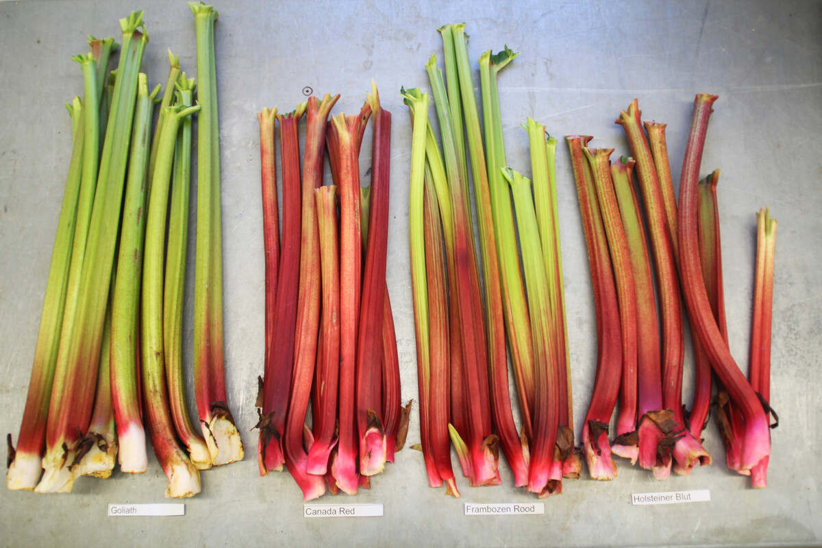 Im Gemüsebauversuchsbetrieb Bamberg der Bayerischen Landesanstalt für Wein- und Gartenbau Veitshöchheim wurde 2016 ein Sortenversuch mit gängigen Rhabarbersorten angelegt, in erster Linie, um die Erträge und den Grad der Rotfärbung der Stangen zu beurteilen. Die rote Farbe ist bei Verarbeitern sehr beliebt. Kuchen sieht mit etwas Rot einfach appetitlicher aus. So konnten aus dem Sortenversuch in Bamberg ‘Holsteiner Blut‘, ‘Frambozen Rood’, ‘Canada Red’ und ‘Goliath’ untersucht werden. Da die Fragestellung vor allem für das Voralpenland und alle anderen „späteren“ Gemüsebauregionen interessant ist, wurde ‘Frambozen Rood’ aus einem Praxisbetrieb aus Miesbach mit einbezogen.