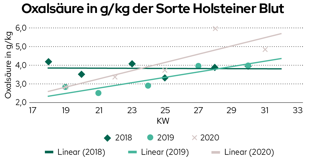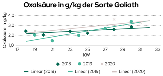 Bei allen Sorten ergab sich ein Anstieg der Oxalsäurekonzentration mit späteren Ernteterminen Birgit Rascher