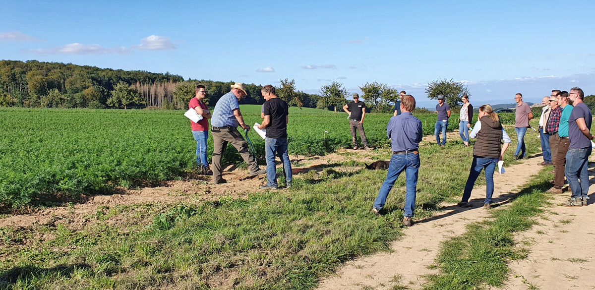Dass bei euch auf dem Betrieb Versuche durchgeführt werden, gibt es ja schon länger. Wie kommt es zu den Kooperationen? Ja so ist es. Manchmal haben wir selbst eine Idee, aber wir bekommen auch viele Anfragen von Unis. Wir setzen die Versuche bei uns um, von denen wir überzeugt sind, dass sie etwas bringen und mir ist wichtig, dass wir auch Spaß dabei haben. Dieses Jahr haben wir 17 Versuche durchgeführt, es waren Sortenversuche dabei, aber auch Kooperationen mit Landtechnikherstellern, zum Beispiel mit der Firma Lemken, für die wir Prototypen getestet haben. Wie kam euer Betrieb zu dem Versuch mit Lagermöhren? Der Versuch ist daraus entstanden, dass wir eine Fahrgasse falsch gesetzt haben. Dadurch ergab sich ein Streifen, der nicht behandelt wurde und stark mit Mehltau infiziert war. Das wollten wir für den Versuch nutzen und zeigen, welche Maßnahmen für die Qualität der Lagermöhren etwas bringen, welche nicht und wie teuer sie sind. Was hatte den größten Effekt? Durch den gezielten Pflanzenschutz und die Blattdüngung hatten die Möhren gesündere, intaktere Blätter und konnten länger ausreifen. Dadurch war das Möhrengewicht höher. Unsere Theorie ist: Je fitter die Möhren ins Lager kommen, umso fitter kommen sie auch wieder raus. Man muss wissen, wir haben knapp 3.000 Kistenstellplätze im Lager. Wenn wir aus jeder Kiste 100 kg mehr rausholen, ist das für uns ein wichtiger Hebel, denn jede Kiste verursacht beim Lagern Fixkosten von ungefähr 60 Euro. Ob ich 500 oder 600 kg Möhren aus einer Kiste auswasche, ist entscheidend. Eine besser ausgebildete Möhre, die nicht so schnell altert, weniger Atmungsverluste hat und vitaler im Frühjahr aus dem Lager kommt, war unser Ziel. Habt ihr durch den Versuch etwas an eurem Bestandsmanagement der Möhren geändert? Beim Pflanzenschutz hat sich eigentlich nichts verändert, da setzen wir auf unser Prognosemodell. Blattdüngung haben wir zwar davor schon gemacht, aber noch nicht so gezielt. Im Versuch wurden viele Pflanzen- und Blattproben genommen, in der Spitze bis zu fünf Stück in einem Möhrenschlag. Die wurden jeweils ins Labor geschickt, wenn wir das Ergebnis hatten, haben wir behandelt, dann wurde wieder eine Probe gezogen und so weiter. Man hat festgestellt, in den Pflanzen war Magnesium immer im Mangel, obwohl der Boden bestens damit versorgt war. Zink war auch ein Thema, deshalb geben wir jetzt beides pauschal als Blattdüngung, zumal es nicht viel kostet. Blattanalysen machen wir jetzt zwar nicht mehr so intensiv wie damals im Versuch, aber wir nehmen meistens eine Probe Anfang August. Für die Spurenelemente geben wir ‘epsoMICROTOP’ und ‘4Plants Nährstoff-Kombi’. Wir sind weiter am Ausprobieren, welche Mittel mischbar sind und vor allem, welche besonders gut mischbar sind. Da sehen wir noch viel Potenzial.Was motiviert dich zu den On-Farm-Versuchen? Wenn man vorne dran bleiben will, ist es wichtig, dass man Zeit reinsteckt. Schon meine Eltern haben immer wieder Versuche auf dem Betrieb durchgeführt, ich habe das quasi vorgelebt bekommen. Zum einen sehen wir, was uns etwas bringt und was nicht. Und es ist für uns die Möglichkeit, mit Dienstleistern und der Forschung im Austausch zu sein. Will man zum Beispiel von Prognosemodellen profitieren, muss man sie auch mit Daten füttern. Wir arbeiten hier eng mit Argus monitoring zusammen, das ist ein Dienstleister, der für uns ein Prognosemodell erstellt, wie hoch das Infektionsrisiko mit Mehltau oder Alternaria gerade ist – das können wir beim Pflanzenschutz aktiv anwenden. Wenn wir zum Beispiel kranke Pflanzen sehen, aber nicht wissen, was es ist, schicken wir sie ins Labor, um genau zu wissen, was wir da vor uns haben. Wie groß ist der Aufwand für euch? Viel bis gar nicht, das kommt ganz drauf an. Wir sprechen in der Versuchsplanung schon mit, was umsetzbar ist und was nicht. Wir überlegen, welche Sorten wir anbauen, wann wir säen, welche Partie wann ins Lager kommt. Das Bonitieren und Randomisieren der Versuche übernimmt meistens der Projektpartner. Es gibt in der Regel eine Aufwandsentschädigung für uns, die deckt aber meistens nicht die Kosten. Trotzdem: Für den Betrieb ist es das beste, es hier auszuprobieren, so gewinnen wir wertvolle Erkenntnisse. Was würdet ihr gerne noch im Anbau untersuchen? Nächstes Jahr machen wir einen Versuch zu Rote Bete. Wir wollen herausfinden, wovon die Schalenqualität abhängig ist. Wir bauen mittlerweile fast 40 ha Rote Bete an, fast alles Speiseware, da ist die Schalenqualität entscheidend. Aus B-Ware kann man zwar Saft machen, aber der Preisunterschied ist groß. Deshalb wollen wir den Schalenfehlern auf den Grund gehen.