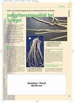 Das Ertragspotenzial einer Spargelanlage wird bereits bei deren Pflanzung wesentlich mitbestimmt. Neben der Sortenwahl hat die Qualität der Jungpflanzen eine entscheidende Bedeutung, insbesondere weil die Rodung und die Pflanzung als Stressfaktoren anzusehen sind. Anhand ausgewählter Ergebnisse...